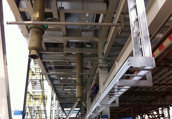 傳統的操作平臺均為在鋼梁上鋪設花紋鋼板,在化工行業操作平臺等往往露天放置以及化工行業腐蝕性較強的生產環境,使得其易因銹蝕而引起強度和剛度的迅速減弱,使用壽命大為縮減,同時,較小的焊縫也容易失去強度,容易引發安全隱患。 花紋鋼板由于需要在現場進行除銹、刷漆,其工作量大,施工質量不易得到保證;花紋鋼板易變形凹陷,造成積水生銹,每三年需要做一次全面的防腐保養,才能保證其使用性能。對易燃易爆物品控制要求嚴格的化工生產行業帶來諸多不便,甚至影響到日常生產.