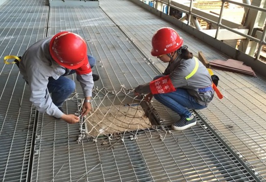 鋼格板的鋪設(shè)應(yīng)使鋼格板的橫桿朝上鋪設(shè)在平臺(tái)通道的行走面上,不應(yīng)將橫桿朝下鋪設(shè)使用。承載扁鋼的兩端應(yīng)落實(shí)支承在平臺(tái)的梁架上,固定應(yīng)牢固可靠,否則不允許人員進(jìn)入。鋼格板的尺寸受吊裝和搬運(yùn)過程中的受力限制,可拆卸鋪板的尺寸還需考慮到使用人工搬運(yùn)時(shí)的重量限制。
