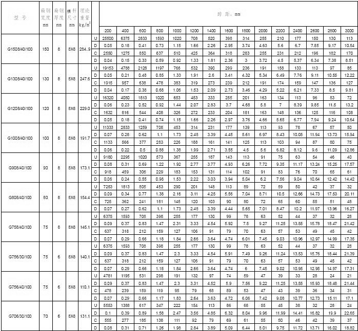 U - 代表重型鋼格板的安全外加均布面荷載,KN/㎡;D - 變形撓度,mm。