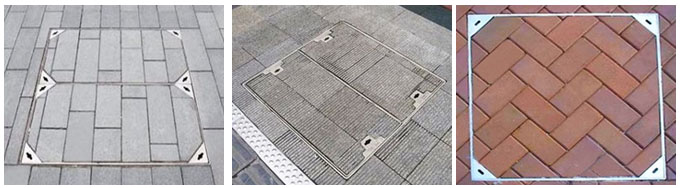 隱形井蓋選材可采用鍍鋅鋼板或不銹鋼板,內外框主結構均一次性折彎成”“L”形,并焊接而成,內框可選焊接鋼筋,加強內框強度及穩固性的同時,還能有效附結填充的砂漿。此結構由于結構緊湊,并具有更好的承載性能及穩定性,被廣泛運用于多數場合,如小區路面、臨街路面等。該產品外觀美觀精致,承載能力高,嚴格按照國家標準生產;產品內在質量長期穩定可靠;使用壽命長,產品規格可根據周圍環境規格任意設計。