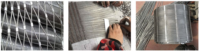 不銹鋼繩卡扣網由若干鋼絲繩通過卡扣連接成菱形網孔,卡扣是由長方形的金屬塊構成,卡扣將菱形網孔的網孔結處的相鄰鋼絲繩網卷在金屬卷里,鋼絲繩網的形式美觀,還有一定的彈性,人體或者動物撞擊鋼絲繩網,不容易受傷,起到安全防護的作用。